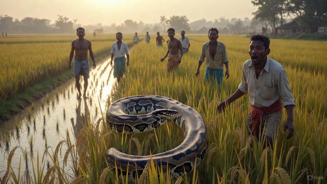 ধানক্ষেতে বিশাল অজগর ও উদ্ধার তৎপরতা