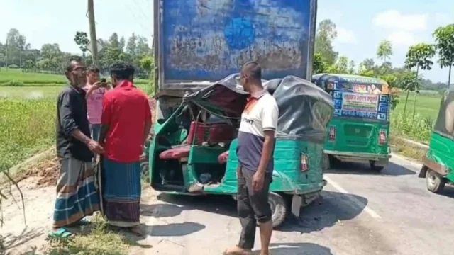 শুক্রবার (২৬ সেপ্টেম্বর) সকাল ৭টার দিকে উপজেলার ফুলবাড়ি কাঠালতলা এলাকায় দ্রুতগতির বালুবাহী ট্রাকের সঙ্গে সিএনজি চালিত অটোরিকশার মুখোমুখি সংঘর্ষে এ প্রাণহানি ঘটে। নিহতরা হলেন—গাইবান্ধার সাঘাটা উপজেলার কুঠিবাড়ি গ্রামের বিপুল চন্দ্র দাস (৩৮), তার পাঁচ বছরের শিশু ছেলে বিপ্লব চন্দ্র দাস এবং অটোরিকশা চালক শিবগঞ্জ উপজেলার সুলতানপুর গ্রামের শুকুর আলী (৪০)। আহতরা হলেন বিপুলের স্ত্রী মমতা রানী ও মেয়ে রুপা মনি দাস।