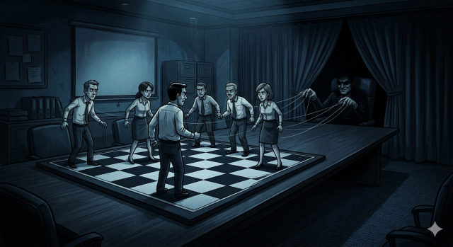 হার্ভার্ড বিজনেস রিভিউ-এর এক গবেষণায় দেখা গেছে, যেসব ব্যবস্থাপক নিজেদের অযোগ্যতা বা নিরাপত্তাহীনতায় ভোগেন, তারা প্রতিষ্ঠানের স্বার্থের চেয়ে নিজের ক্ষমতা ধরে রাখাকে বেশি গুরুত্ব দেন। এই ধরনের মানসিকতার managers অধীনস্থদের মধ্যে সুসম্পর্ক বা একতা মোটেও পছন্দ করেন না। কোনো দুজন কর্মীর মধ্যে ঘনিষ্ঠতা দেখলেই তারা শঙ্কিত হয়ে পড়েন — পাছে তারা একজোট হয়ে তার কর্তৃত্বকে চ্যালেঞ্জ করে বসে! তাই তারা অত্যন্ত কৌশলে বিষের বীজ বপন করেন।