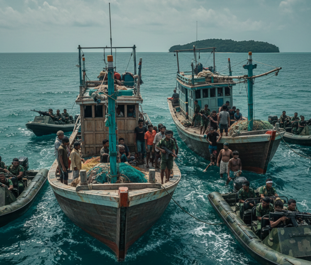 বিজনেসটুডে২৪ প্রতিনিধি, কক্সবাজার: বঙ্গোপসাগরের সেন্টমার্টিন দ্বীপ সংলগ্ন মিয়ানমার সীমান্ত এলাকায় মাছ ধরার সময় ১৩ জন বাংলাদেশি জেলেকে অপহরণ করেছে দেশটির সশস্ত্র বিদ্রোহী গোষ্ঠী আরাকান আর্মি। মঙ্গলবার (২৩ ডিসেম্বর) সকালে ও দুপুরে পৃথক দুই অভিযানে দুটি ইঞ্জিনচালিত নৌকাসহ তাদের ধরে নিয়ে যাওয়া হয়। এই ঘটনায় দ্বীপের বাসিন্দাদের মধ্যে চরম আতঙ্ক বিরাজ করছে।