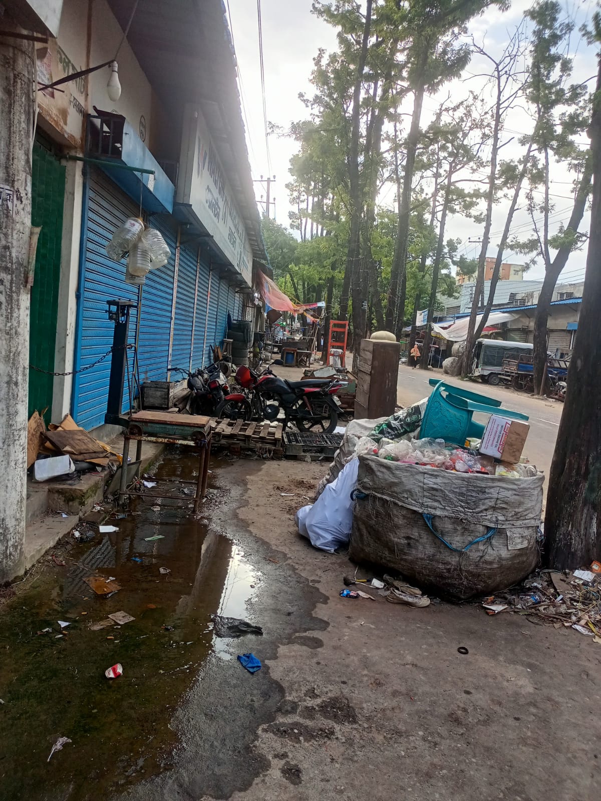 • অব্যবস্থাপনা: রাস্তার ওপরই রাখা হয়েছে দোকানের ওজন মাপার যন্ত্র ও মালামাল।