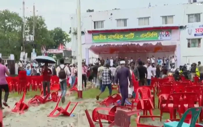 বিজনেসটুডে২৪ প্রতিনিধি, গোপালগঞ্জ: গোপালগঞ্জে জাতীয় নাগরিক পার্টি (এনসিপি) আয়োজিত পূর্ব ঘোষিত পদযাত্রা ও সমাবেশকে কেন্দ্র করে সহিংসতা ছড়িয়ে পড়েছে জেলার বিভিন্নস্থানে। বুধবার (১৬ জুলাই) দুপুরে শহরের পৌর পার্কের উন্মুক্ত মঞ্চে দলটির কেন্দ্রীয় সমাবেশের মঞ্চে একদল যুবক হামলা চালায়, চেয়ার ছুড়ে ফেলে এবং সাউন্ড সিস্টেমসহ বেশকিছু সরঞ্জাম ভাঙচুর করে। এনসিপির নেতাকর্মীরা এ ঘটনার জন্য ছাত্রলীগকে দায়ী করেছে।