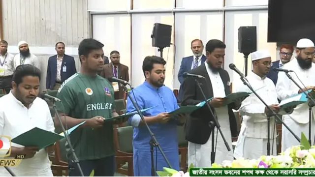 সংসদীয় রেওয়াজ অনুযায়ী, সংখ্যাগরিষ্ঠ দল হিসেবে সকালেই প্রথম ধাপে শপথ নেন বিএনপির নবনির্বাচিত সংসদ সদস্যরা। এরপর দ্বিতীয় ধাপে দুপুর ১২টার দিকে শপথ নেন বাংলাদেশ জামায়াতে ইসলামী জোটের প্রতিনিধিরা। সকাল ৯টা থেকেই নবনির্বাচিত এমপিদের আগমনে সংসদ ভবন এলাকা মুখরিত হয়ে ওঠে।