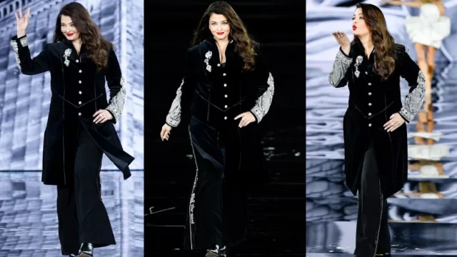 র‌্যাম্পে হাঁটার জন্য ঐশ্বরিয়া বেছে নেন ডিজাইনার মানীশ মালহোত্রার শেরওয়ানি-প্রেরণাদায়ী আধুনিক পোশাক। হীরা খচিত নেকলেস ও ঝলমলে অলঙ্করণে সমৃদ্ধ পোশাকটিতে ছিল রাজকীয় ঔজ্জ্বল্য। ঐশ্বরিয়ার মেকআপেও ফুটে ওঠে তাঁর স্বকীয়তা— উজ্জ্বল লাল ঠোঁট, নিখুঁত কনট্যুর এবং উজ্জ্বল ত্বক। ঢেউ খেলানো চুল তাঁর লুককে করে তোলে আরও আকর্ষণীয়।