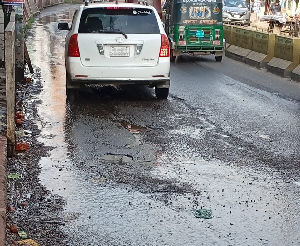 সরেজমিনে দেখা যায়, রাস্তার একাংশজুড়ে ছড়িয়ে পড়েছে কাদা ও পানির স্রোত। ফাটা পাইপ দিয়ে ছিটকে আসা পানিতে রাস্তার পিচ উঠে গিয়ে তৈরি হয়েছে ছোট-বড় খানাখন্দ। ওইসব জায়গা দিয়ে চলাচল করছে গাড়ি, রিকশা, মোটরসাইকেল, এমনকি পথচারীদেরও হাঁটতে হচ্ছে খুবই সতর্কভাবে।