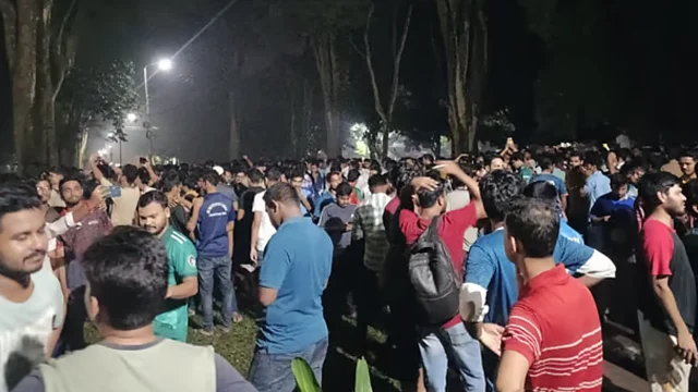 অবশেষে শিক্ষার্থীদের চাপের মুখে প্রশাসন রাত ১টার দিকে পোষ্য কোটা স্থগিতের ঘোষণা দিলেও আন্দোলনকারীদের দাবি এখন একটাই—“বাতিল ছাড়া অন্য কোনো সমাধান মানা হবে না।”