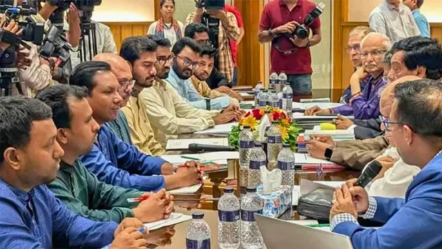 বৈঠকের সূচনায় বক্তব্য দেন জাতীয় ঐকমত্য কমিশনের সহসভাপতি অধ্যাপক আলী রীয়াজ। তিনি বলেন, “২০১৮ সালের কোটাবিরোধী আন্দোলন ছিল ফ্যাসিবাদবিরোধী সংগ্রামের সূচনা। সেই আন্দোলনের ধারাবাহিকতায় আজ আমরা এক অভূতপূর্ব রাজনৈতিক পরিবর্তনের দ্বারপ্রান্তে। এই পরিবর্তনকে অর্থবহ করতে কেবল সংস্কার কমিশনের সুপারিশ যথেষ্ট নয়; সব রাজনৈতিক দলের সম্মিলিত অংশগ্রহণের মাধ্যমে নতুন বাংলাদেশ গড়তে হবে।”