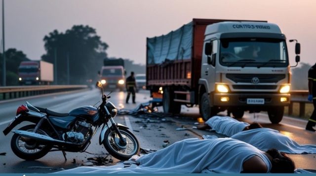 প্রত্যক্ষদর্শী মোর্শেদুল আলম জানান, পদুয়া সিকদার দিঘী পাড় এলাকায় গ্রামীণ রাস্তা থেকে একটি সিএনজি অটোরিকশা মহাসড়কে উঠে চট্টগ্রামগামী একটি চলন্ত মোটরসাইকেলে ধাক্কা দেয়। এতে মোটরসাইকেল আরোহী তিনজন সড়কে ছিটকে পড়েন। সেই সময় বিপরীত দিক থেকে আসা কক্সবাজারগামী একটি ট্রাক তাঁদের ওপর দিয়ে চলে যায়। ঘটনাস্থলেই দুজন নিহত হন এবং গুরুতর আহত অপরজনকে হাসপাতালে নেওয়ার পথে তাঁর মৃত্যু হয়।