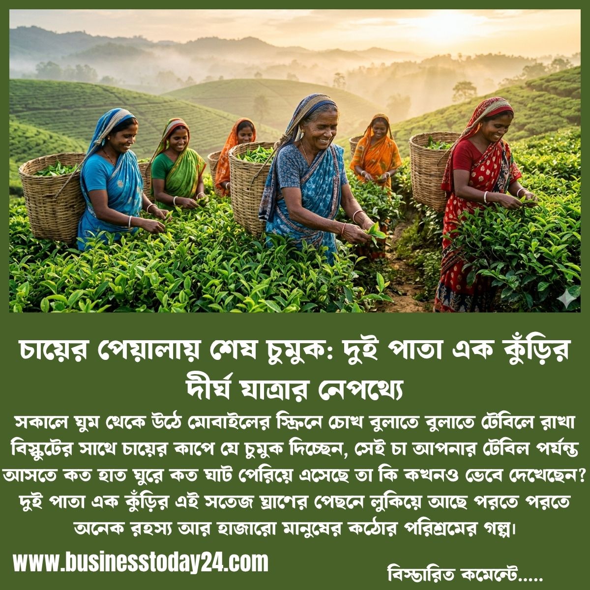 এক কাপ গরম চা আমাদের ক্লান্তি দূর করলেও এর প্রতিটি দানা বয়ে আনে চা বাগানের মাটি, রোদ, বৃষ্টি আর লক্ষাধিক শ্রমিকের জীবন সংগ্রামের এক অনন্য আখ্যান।
