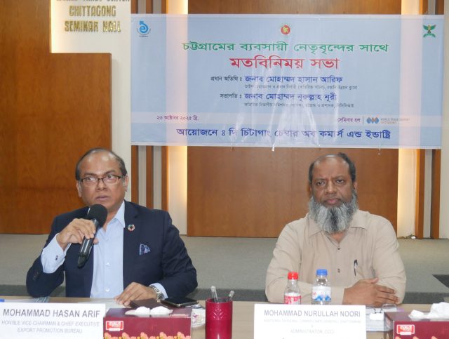 চট্টগ্রামে রপ্তানি উন্নয়ন ব্যুরো ও ব্যবসায়ী নেতাদের মতবিনিময়