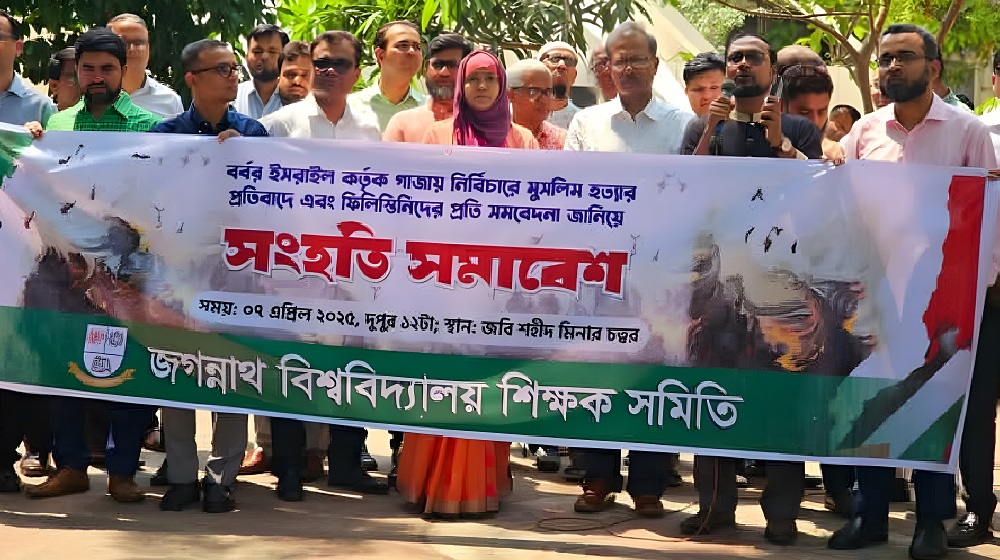 বিক্ষোভ সমাবেশে অধ্যাপক ড. রইছউদ্দীন বলেন, “আজ আমরা দৃঢ় প্রতিজ্ঞা করছি, ইসরায়েলের সব পণ্য বর্জন করবো। পাশাপাশি বাংলাদেশ সরকারের কাছে আবেদন জানাচ্ছি যেন রাষ্ট্রীয়ভাবে ইসরায়েলি বর্বরতার প্রতিবাদ জানানো হয়।”