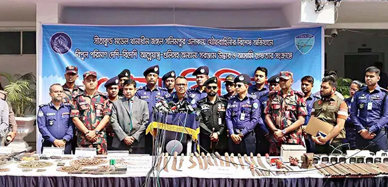 বিজনেসটুডে২৪ প্রতিনিধি, চট্টগ্রাম: সীতাকুণ্ডের দুর্গম জঙ্গল সলিমপুর এখন প্রশাসনের পূর্ণ নিয়ন্ত্রণে। সোমবার (৯ মার্চ) ভোর থেকে শুরু হওয়া নজিরবিহীন এক যৌথ অভিযানের পর মঙ্গলবার (১০ মার্চ) দুপুরে সংবাদ সম্মেলনের মাধ্যমে এর সাফল্য তুলে ধরেছে প্রশাসন। উদ্ধার হয়েছে বিদেশি পিস্তল থেকে শুরু করে বিপুল পরিমাণ অত্যাধুনিক গোলাবারুদ ও অস্ত্র তৈরির কারখানা।