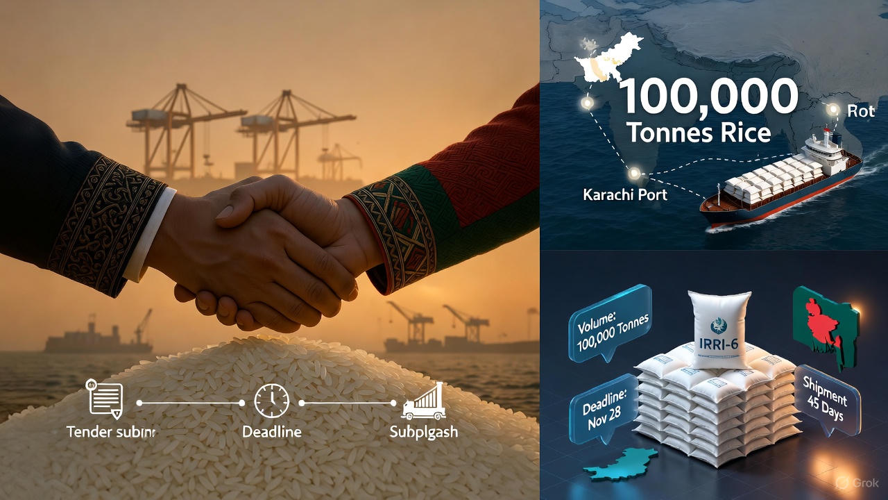 বাংলাদেশের জন্য ১ লাখ টন চাল কেনার টেন্ডার পাকিস্তানের