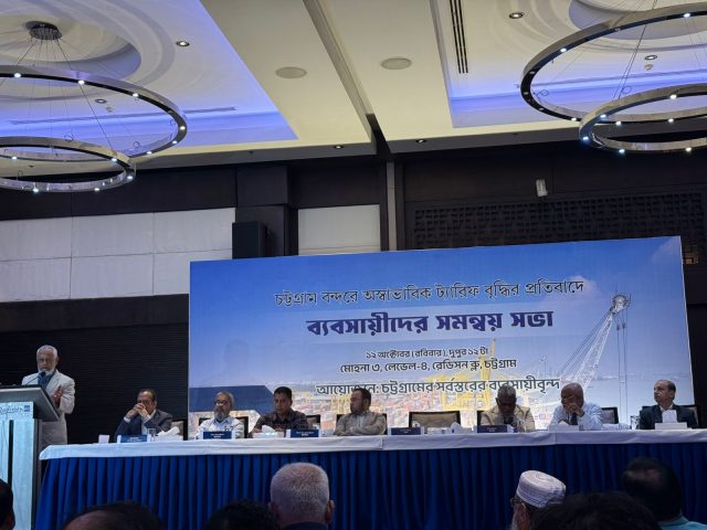 রোববার (১২ অক্টোবর) দুপুরে চট্টগ্রামের হোটেল র্যাডিসন ব্লুতে সর্বস্তরের ব্যবসায়ীদের সমন্বিত সভা অনুষ্ঠিত হয়। সভায় বক্তারা বলেন, বন্দরের মাশুল ৪১ শতাংশ পর্যন্ত বাড়ালে সরাসরি আমদানি-রপ্তানি ব্যয় বৃদ্ধি পাবে এবং দেশের অর্থনীতিতে নেতিবাচক প্রভাব ফেলবে। তারা স্টেকহোল্ডারদের সঙ্গে আলোচনা না করে ট্যারিফ বৃদ্ধিকে ব্যবসায়িক নীতির পরিপন্থী হিসেবে অভিহিত করেন।