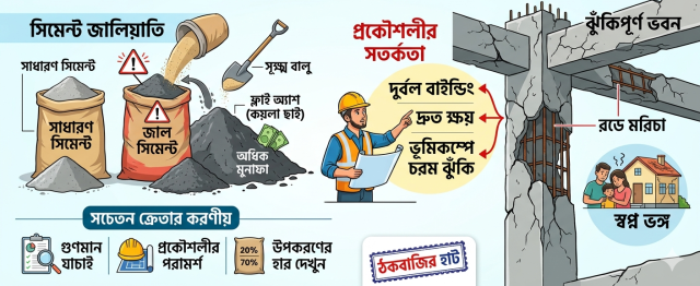 পিসিসি সিমেন্টে নির্দিষ্ট অনুপাতে ফ্লাই অ্যাশ ব্যবহারের নিয়ম থাকলেও অসাধু ব্যবসায়ীরা সস্তা দরে বিদ্যুৎ কেন্দ্র থেকে সংগৃহীত নিম্নমানের ছাই এবং অনেক ক্ষেত্রে সাধারণ বালু মিশিয়ে সিমেন্টের ওজন বৃদ্ধি করছে। এতে উৎপাদন খরচ অনেক কমে আসলেও সিমেন্টের কার্যকারিতা নষ্ট হয়ে যাচ্ছে।