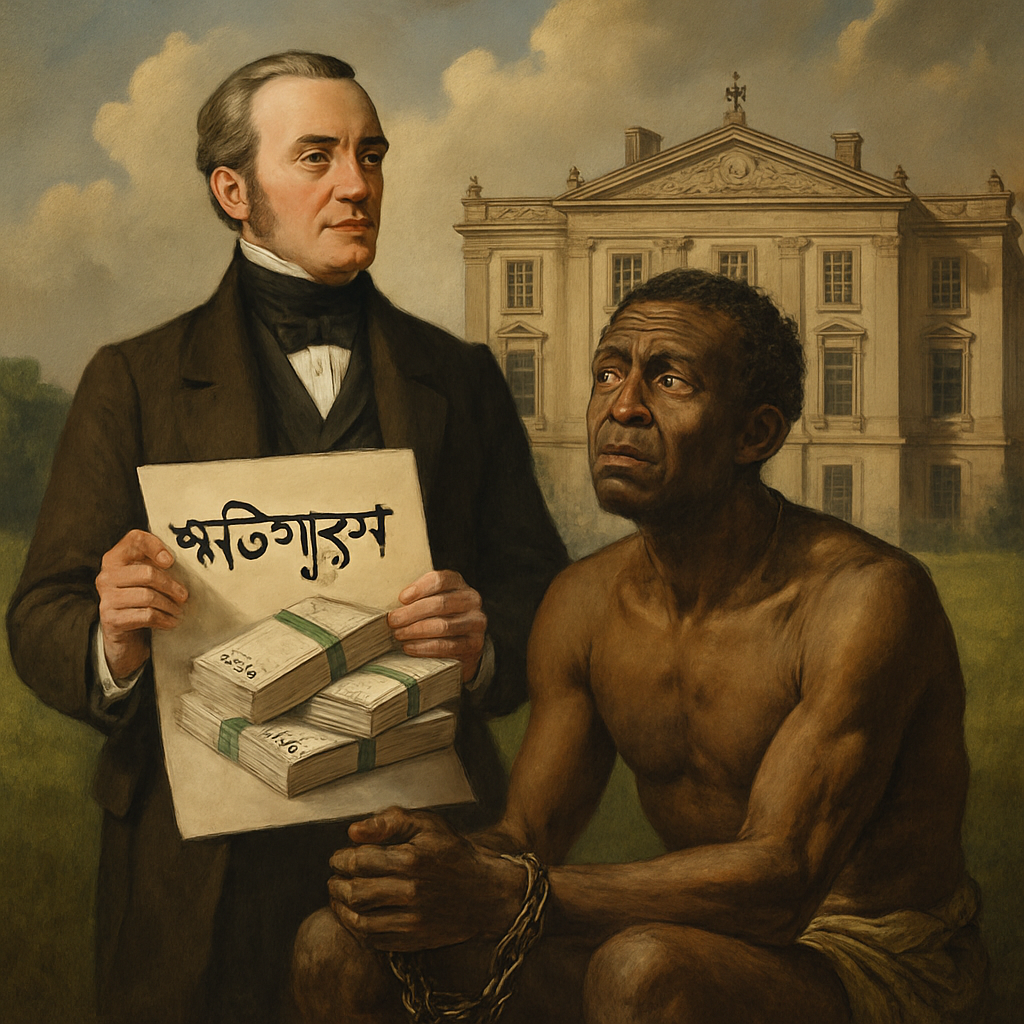 ১৮৩৩ সালে যখন ব্রিটেন দাসপ্রথা বাতিলের ঘোষণা দেয়, তখন প্রায় আট লাখ দাসকে ‘মুক্ত’ করা হয়। তবে এই মুক্তির বিনিময়ে সরকার কোনো দাসকে নয়, বরং দাসমালিকদের প্রায় দুই কোটি ব্রিটিশ পাউন্ড ক্ষতিপূরণ দেয়। আজকের হিসাবে এই টাকার পরিমাণ দাঁড়ায় প্রায় দশ বিলিয়ন পাউন্ডে।