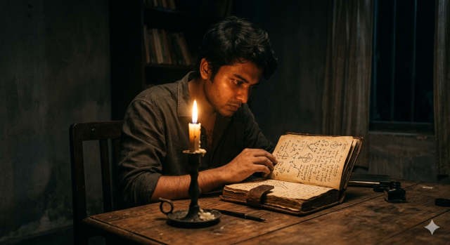 রাত তখন গভীর। বাইরে ঝোড়ো হাওয়া বইছে, যার শব্দে পুরনো বাংলোর জানলাগুলো মাঝেমধ্যে কেঁপে উঠছে। অনির্বাণ তার টেবিলের ওপর রাখা মোমবাতিটা ঠিক করে বসাল। সামনে খোলা ম্যানেজার রাজীব মল্লিকের সেই ধুলোমাখা ডায়েরি।