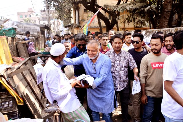 মহিলাদের কাছে আবেদন: অত্যন্ত বিনয়ের সাথে নারী ভোটারদের কাছে গিয়ে তুলে ধরছেন ধানের শীষের প্রয়োজনীয়তা।