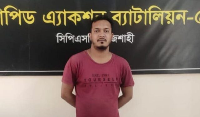 বুধবার (১৬ এপ্রিল) দিবাগত রাতে ঝলমলিয়া এলাকা থেকে তাঁকে গ্রেপ্তার করে র্যাব-৫ রাজশাহীর মোল্লাপাড়া ক্যাম্পের একটি দল। বৃহস্পতিবার এক সংবাদ বিজ্ঞপ্তিতে এ তথ্য জানানো হয়।