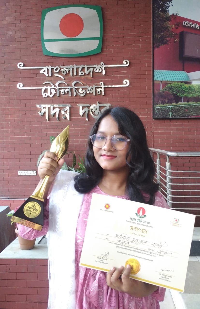 জাতীয় মঞ্চে চ্যাম্পিয়ন হওয়ার পর তার হাতে উঠেছে নতুন কুঁড়ির স্বপ্নময় ট্রফি, অর্জন সনদ, দুই লক্ষ টাকার চেক এবং সবচেয়ে মূল্যবান স্বীকৃতি বাংলাদেশ টেলিভিশনের তালিকাভুক্ত শিল্পী হওয়া। যেন পুরস্কারের ঝুলি নয়, ভবিষ্যতের পথচলার জন্য আলোর দিশা।