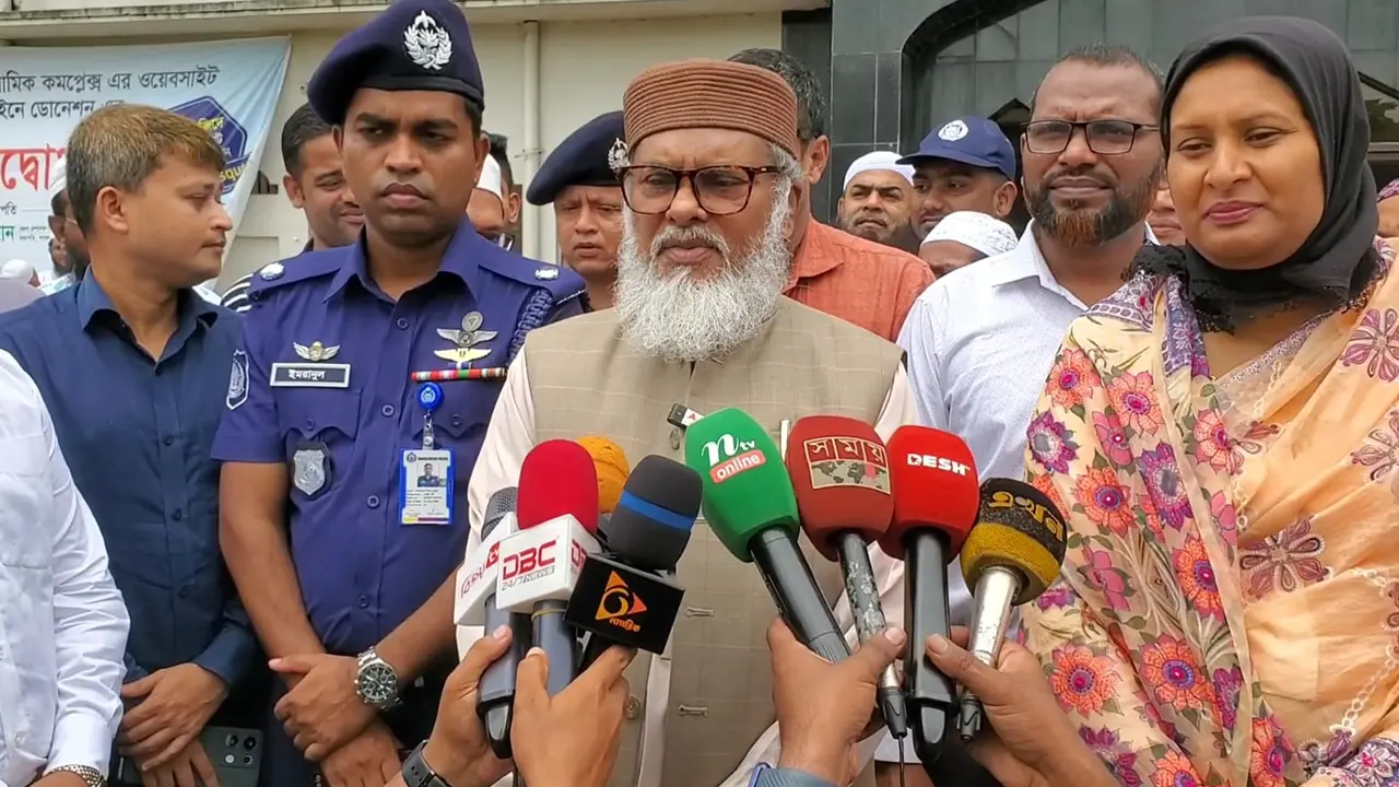 কিশোরগঞ্জের ঐতিহাসিক পাগলা মসজিদ পরিদর্শন শেষে কথা বলেন ধর্ম উপদেষ্টা ড. অ ফ ম খালিদ হোসেন। ছবি: সংগৃহীত