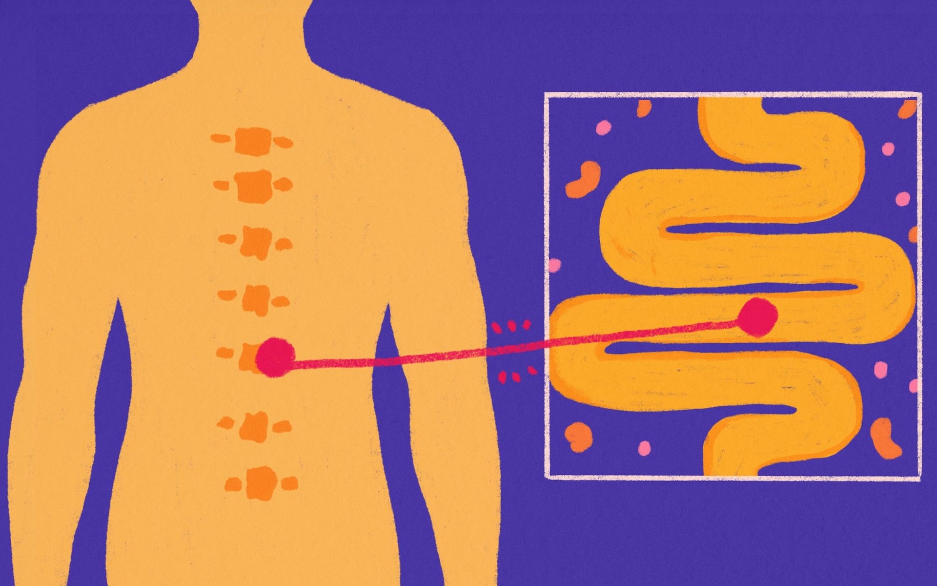 মূলত ভুল খাদ্যাভ্যাস বা মানসিক চাপের কারণে অন্ত্রের ক্ষতিকর ব্যাকটেরিয়া বেড়ে গেলে ‘লিকি গাট’ (leaky gut) বা অন্ত্রের ছিদ্র দিয়ে ক্ষতিকর উপাদান রক্তে মিশে যায়। এটি শরীরে এক ধরনের দীর্ঘস্থায়ী প্রদাহ (Inflammation) সৃষ্টি করে, যা মেরুদণ্ডের ডিস্ক ও জয়েন্টের ক্ষতি করে। এছাড়া আইবিএস (IBS) এবং কোষ্ঠকাঠিন্যের মতো সমস্যাগুলো পেটের পেশীতে চাপ সৃষ্টি করে, যার রেশ ছড়িয়ে পড়ে কোমরে বা পিঠে।