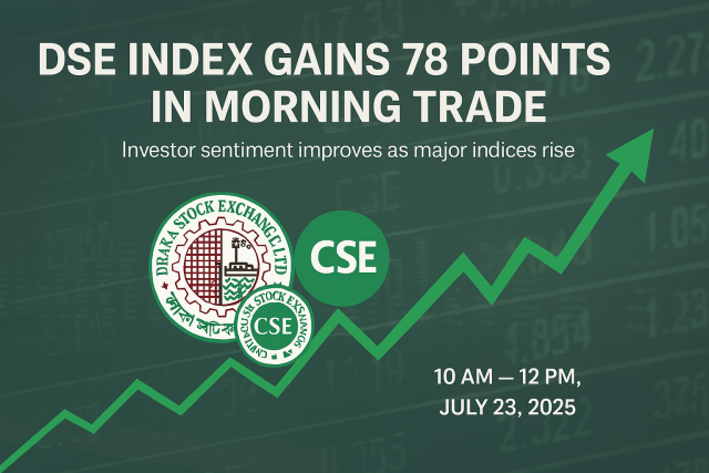 ঢাকা স্টক এক্সচেঞ্জের দেওয়া তথ্যমতে, বুধবার সকাল ১০টা থেকে দুপুর ১২টা পর্যন্ত লেনদেনের মধ্যে ডিএসইএক্স সূচক বেড়েছে ৭৮ দশমিক ৫৭ পয়েন্ট। এই বৃদ্ধির ফলে সূচকটি অবস্থান করছে ৫ হাজার ৩৪৯ দশমিক ১৪ পয়েন্টে। একই সময়ে ডিএসইএস সূচক ১১ দশমিক ৬২ পয়েন্ট বেড়ে দাঁড়িয়েছে ১ হাজার ১৭৩ দশমিক ২৭ পয়েন্টে।