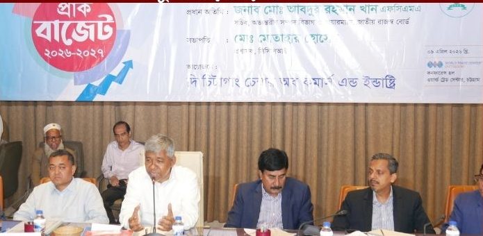 ২০২৬-২৭ অর্থবছরের জাতীয় বাজেট প্রণয়নকে সামনে রেখে চট্টগ্রাম ওয়ার্ল্ড ট্রেড সেন্টারে এক গুরুত্বপূর্ণ প্রাক-বাজেট মতবিনিময় সভা অনুষ্ঠিত হয়েছে । চিটাগাং চেম্বার অব কমার্স এন্ড ইন্ডাষ্ট্রি আয়োজিত এই সভায় প্রধান অতিথি হিসেবে উপস্থিত ছিলেন জাতীয় রাজস্ব বোর্ডের (এনবিআর) চেয়ারম্যান মোঃ আবদুর রহমান খান এফসিএমএ । সভায় সভাপতিত্ব করেন চেম্বার প্রশাসক মো: মোতাহার হোসেন ।