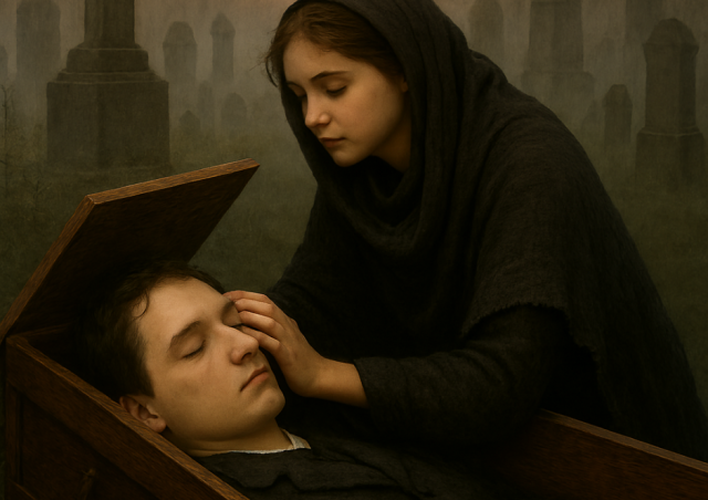 তিনি গিয়েই কফিনের ঢাকনা খুলে প্রেমিকের মুখের দিকে চেয়ে থাকতেন। কখনও তার কপালে চুমু খেতেন, কখনও চোখ বন্ধ করে দীর্ঘ সময় বসে থাকতেন। একজন কবরস্থানের পাহারাদার একদিন বিষয়টি দেখে ফেলেন। প্রথমে ভয় পান, কিন্তু পরে মেয়েটির কান্না আর আকুলতায় বুঝতে পারেন, এই প্রেমিকাকে তার ভালোবাসা আজও আটকে রেখেছে এক মৃতদেহের ঘ্রাণে।