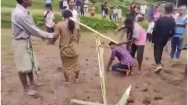 আন্তর্জাতিক ডেস্ক: ভারতের ওড়িশার রায়গড়া জেলায় এক নবদম্পতির প্রতি যে অমানবিক আচরণ করা হয়েছে, তা দেখে রীতিমতো ক্ষোভে ফুঁসছে দেশবাসী। সামাজিক রীতিনীতি ভাঙার অভিযোগ তুলে ওই দম্পতিকে ধানের খেতে জোয়াল চাপিয়ে গরুর মতো হাল টানাতে বাধ্য করা হয়েছে। সামাজিক মাধ্যমে ভাইরাল হওয়া এক ভিডিওতে দেখা যাচ্ছে, পেছনে কয়েকজন লাঠি হাতে দাঁড়িয়ে থাকলেও কেউ থামাচ্ছেন না, বরং কেউ কেউ হাততালি দিয়ে উৎসাহ দিচ্ছেন।