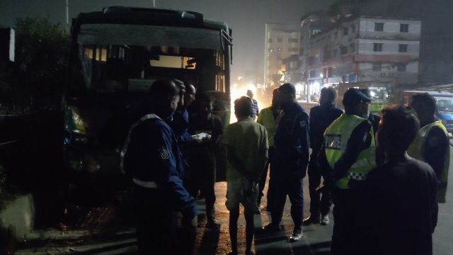 চালক জানান, কে বা কারা আগুন দিয়েছে তা তারা দেখেননি।