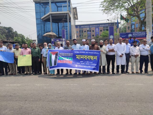 ফিলিস্তিনে ইসরাইলি বর্বর গণহত্যার প্রতিবাদে সাউদার্ন ইউনিভার্সিটিতে মানববন্ধন