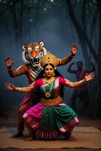 সুন্দরবনের যে সমস্ত মানুষ কাঠ কাটতে, মধু সংগ্রহ করতে বা মাছ ধরতে জঙ্গলে প্রবেশ করেন—যাঁরা ‘বনজীবী’ নামে পরিচিত—তাঁদের জীবন প্রকৃতির সীমারেখায় অত্যন্ত ঝুঁকির মুখে। বাঘ, কুমির, আর সাপের নিরন্তর আতঙ্ক নিয়ে এই জীবিকার পথ। আর এই আতঙ্কের মূলে রয়েছে বাঘের দেবতা দক্ষিণ রায় । বনবিবি পালা মূলত এই দুই শক্তির—রক্ষক দেবী বনবিবি এবং শিকারী দেবতা দক্ষিণ রায়ের—মধ্যে এক চিরন্তন দ্বন্দ্বের মহাকাব্য।