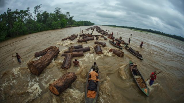 কুড়িগ্রামের চিলমারী, নাগেশ্বরী ও ভুরুঙ্গামারীতে ব্রহ্মপুত্র ও দুধকুমার নদে ভেসে আসছে হাজার হাজার গাছের গুঁড়ি। স্থানীয়রা নৌকা ও দড়ি ব্যবহার করে এসব গাছ সংগ্রহ করছেন। ধারণা করা হচ্ছে, প্রবল স্রোতে ভুটানের কালজানী ও ভারতের হাসিমারা বনাঞ্চল থেকে উপড়ে যাওয়া গাছগুলো নদীপথে ভেসে এসেছে।