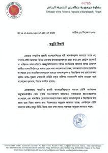 উদ্ভূত পরিস্থিতিতে রিয়াদস্থ বাংলাদেশ দূতাবাস আজ (১৭ ডিসেম্বর ২০২৫) এক জরুরি বিজ্ঞপ্তি জারি করে প্রবাসীদের সতর্ক থাকার আহ্বান জানিয়েছে।