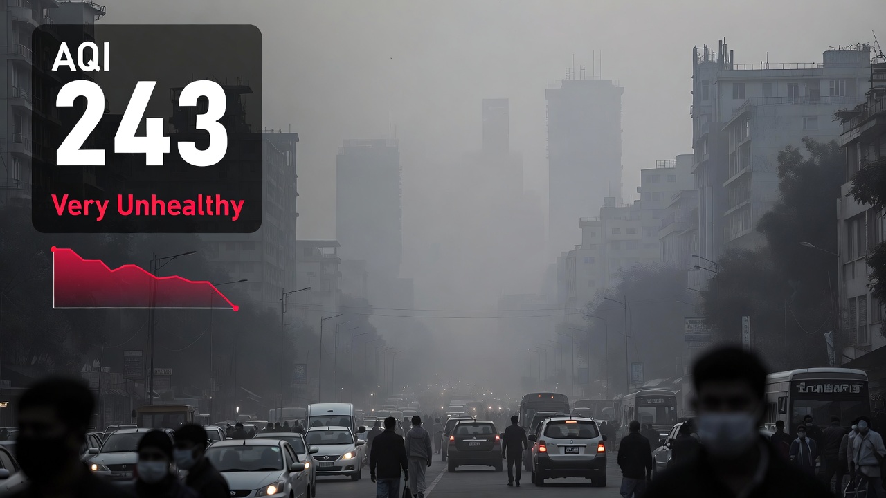 আজ সকাল ৮টা ৪০ মিনিটের তথ্যানুযায়ী, ঢাকার এয়ার কোয়ালিটি ইনডেক্স (AQI) স্কোর ২৪৩। মানদণ্ড অনুযায়ী এই স্কোরকে ‘খুব অস্বাস্থ্যকর’ হিসেবে চিহ্নিত করা হয়।