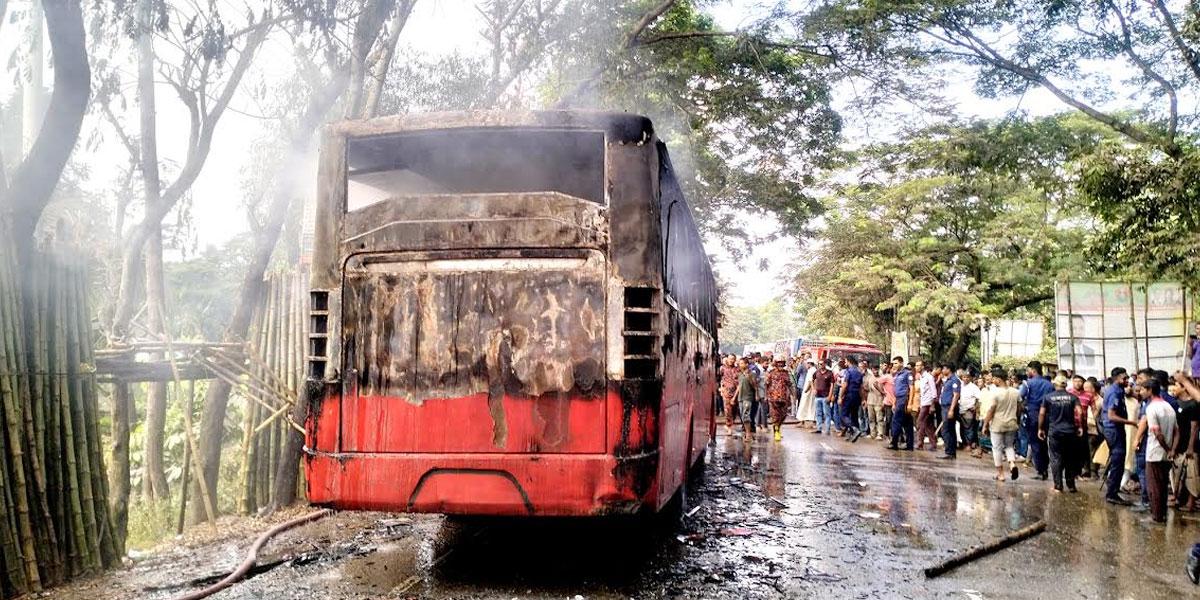 বাসটির নম্বর ছিল ব্রাহ্মণবাড়িয়া–ব–১১–০০০৪। চালক মো. শাহজালাল জানান, বাসটি বরিশাল থেকে খুলনার উদ্দেশ্যে রওনা দিয়েছিল। যাত্রীরা বাসের পেছনে ধোঁয়া দেখতে পেয়ে চিৎকার শুরু করলে চালক বাসটি দ্রুত থামিয়ে দেন। যাত্রীদের দ্রুত বাস থেকে নামতে সক্ষম হন, ফলে বড় ধরনের ক্ষতি থেকে রক্ষা পাওয়া যায়।
