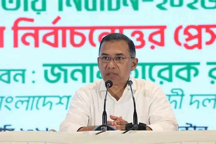 বিজনেসটুডে২৪ প্রতিনিধি, ঢাকা: ত্রয়োদশ জাতীয় সংসদ নির্বাচনে নিরঙ্কুশ জয়লাভের পর দেশবাসীর প্রতি কৃতজ্ঞতা প্রকাশ করেছেন বিএনপি চেয়ারম্যান তারেক রহমান। শনিবার বিকেলে রাজধানীর হোটেল ইন্টারকন্টিনেন্টালে আয়োজিত এক জনাকীর্ণ সংবাদ সম্মেলনে তিনি এই বিজয়কে গণতন্ত্রকামী মানুষের বিজয় হিসেবে অভিহিত করেন। একইসাথে তিনি সাফ জানিয়ে দিয়েছেন, নতুন বাংলাদেশে কোনো ধরনের প্রতিহিংসা বা বেআইনি কর্মকাণ্ড বরদাস্ত করা হবে না।