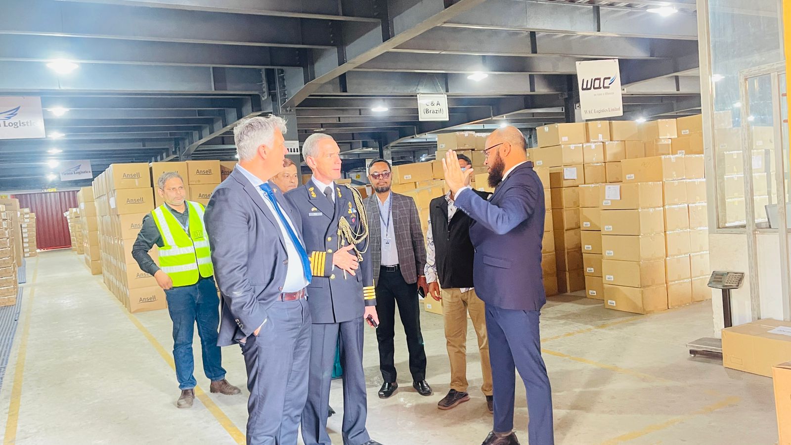 ডিপোতে পৌঁছালে নেদারল্যান্ডসের প্রতিনিধিদলকে স্বাগত জানান স্মার্ট গ্রুপের নির্বাহী পরিচালক ক্যাপ্টেন মাইনুল আহসান খাঁন। তিনি অতিথিদের সামনে প্রতিষ্ঠানের কৌশলগত দিকনির্দেশনা, বর্তমান সক্ষমতা, নিরাপত্তা অবকাঠামো এবং ভবিষ্যৎ উন্নয়ন পরিকল্পনা তুলে ধরেন। এ সময় অন্যান্যের মধ্যে উপস্থিত ছিলেন বিএম কন্টেইনার ডিপো লিমিটেডের মহাব্যবস্থাপক নাজমুল আক্তার খাঁন, উপ-মহাব্যবস্থাপক (ডিজিএম) মোহাম্মদ নুরুল আক্তার, জ্যেষ্ঠ ব্যবস্থাপক মোহাম্মদ হাসান তারেক এবং ব্যবস্থাপক মো. জসীম উদ্দিন প্রমুখ।