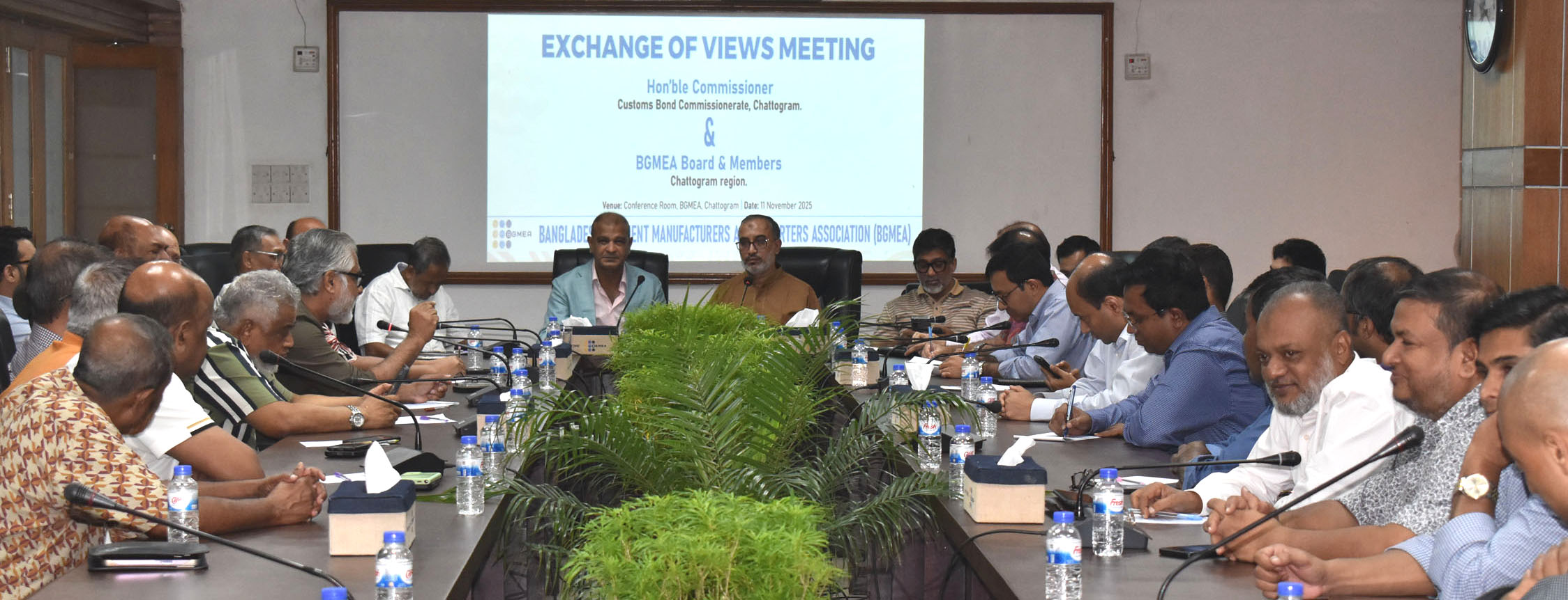 মঙ্গলবার সন্ধ্যায় চট্টগ্রাম বিজিএমইএ ভবনে কাস্টমস বন্ড কমিশনারেট, চট্টগ্রামের কমিশনার মো. মাহফুজুল হক ভূঁঞার সঙ্গে এক মতবিনিময় সভায় এ আহ্বান জানানো হয়। সভায় বিজিএমইএ নেতৃবৃন্দ শিল্পখাতের বিভিন্ন সমস্যা তুলে ধরে দ্রুত সমাধানের আশাবাদ ব্যক্ত করেন।