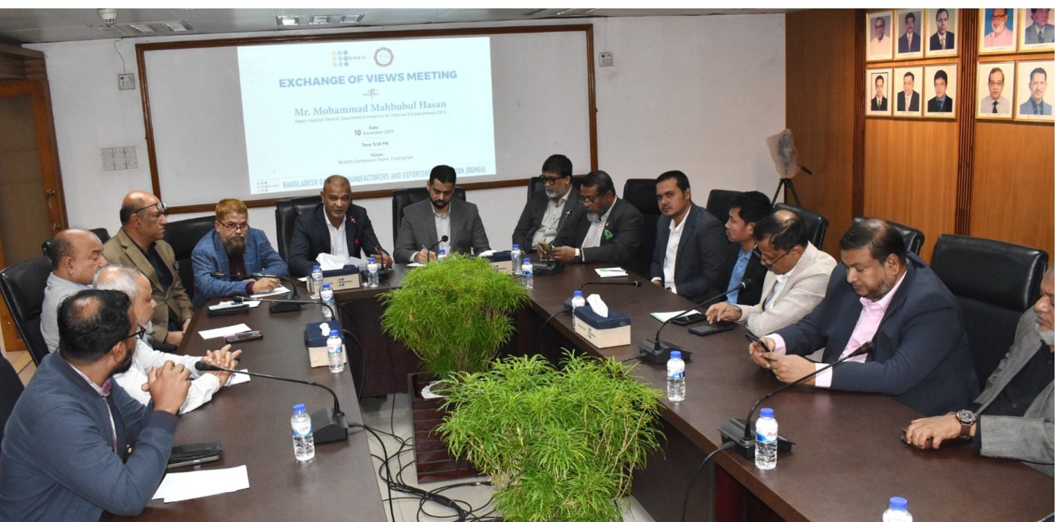 বুধবার (১১ ডিসেম্বর) সন্ধ্যায় চট্টগ্রাম বিজিএমইএ ভবনে কলকারখানা ও প্রতিষ্ঠান পরিদর্শন অধিদপ্তর, চট্টগ্রামের ডিআইজি মোহাম্মদ মাহবুবুল হাসানের সাথে বিজিএমইএ নেতাদের এক মতবিনিময় সভায় এসব বিষয় উঠে আসে।
