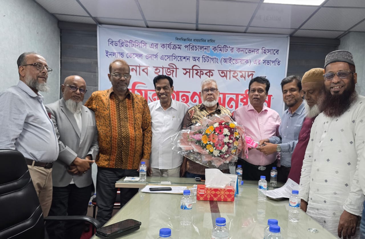 বিজনেসটুডে২৪ প্রতিনিধি, চট্টগ্রাম: ইনল্যান্ড ভেসেল ওনার্স এসোসিয়েশন অব চিটাগাং (আইভোয়াক) সভাপতি হাজি সফিক আহমদকে বাংলাদেশ ওয়াটার ট্রান্সপোর্ট কো-অর্ডিনেশন সেল (বিডব্লিউটিসিসি) এর পরিচালনা কমিটির নতুন কনভেনর হিসেবে মনোনীত করা হয়েছে। রবিবার ১৬ নভেম্বর চট্টগ্রামে বিডব্লিউটিসিসি কার্যালয়ে অনুষ্ঠিত জাহাজ মালিকদের এক সভায় সর্বসম্মতভাবে এই সিদ্ধান্ত গৃহীত হয়।