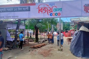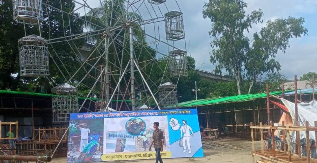বিজনেসটুডে২৪ প্রতিনিধি, চট্টগ্রাম: ষোলশহর দু’নম্বর গেইট এলাকায় অবস্থিত বিপ্লব উদ্যানের সবুজে ঘেরা প্রান্তর এখন বিপদের মুখে। উদ্যানের মাঝখানে বসানো হয়েছে বিশাল লোহার চাকতি, পাশাপাশি নাগরদোলা, রোলারকোস্টারসহ নানা রাইড বসানোর কাজ। খোলা জায়গায় গড়ে উঠছে ৩৬টি অস্থায়ী দোকানের কাঠামো। চলতি মাসে এখানে অনুষ্ঠিত হতে যাচ্ছে ‘জুলাই বিজয় মেলা’, যা ১৫ দিনব্যাপী চলবে।