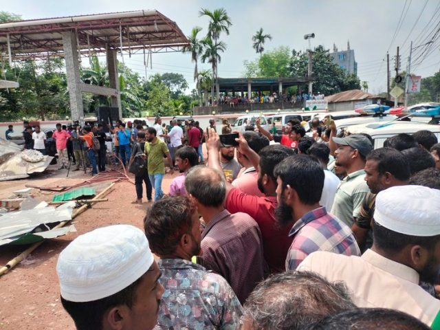 ঘটনাস্থলে উপস্থিত কলাপাতা হোটেলের মালিক সোমা ইসলাম বলেন, “দুপুরে হঠাৎ বিকট শব্দে আমাদের দোকান কেঁপে ওঠে। সিলিং ফ্যান ভেঙে পড়ে যায়। অনেক জিনিসপত্র নষ্ট হয়ে গেছে। সামনে চলন্ত একটি বাসের কাচ ভেঙে পড়ে, যাত্রীরা আহত হয়।”