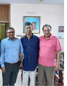 মাঝখানে ভিপি নাজিম। তার ডানে তৎকালীন জিএস আজিম উদ্দিন এবং বামপাশে চাকসুর প্রাক্তন জিএস জমির চৌধুরী।