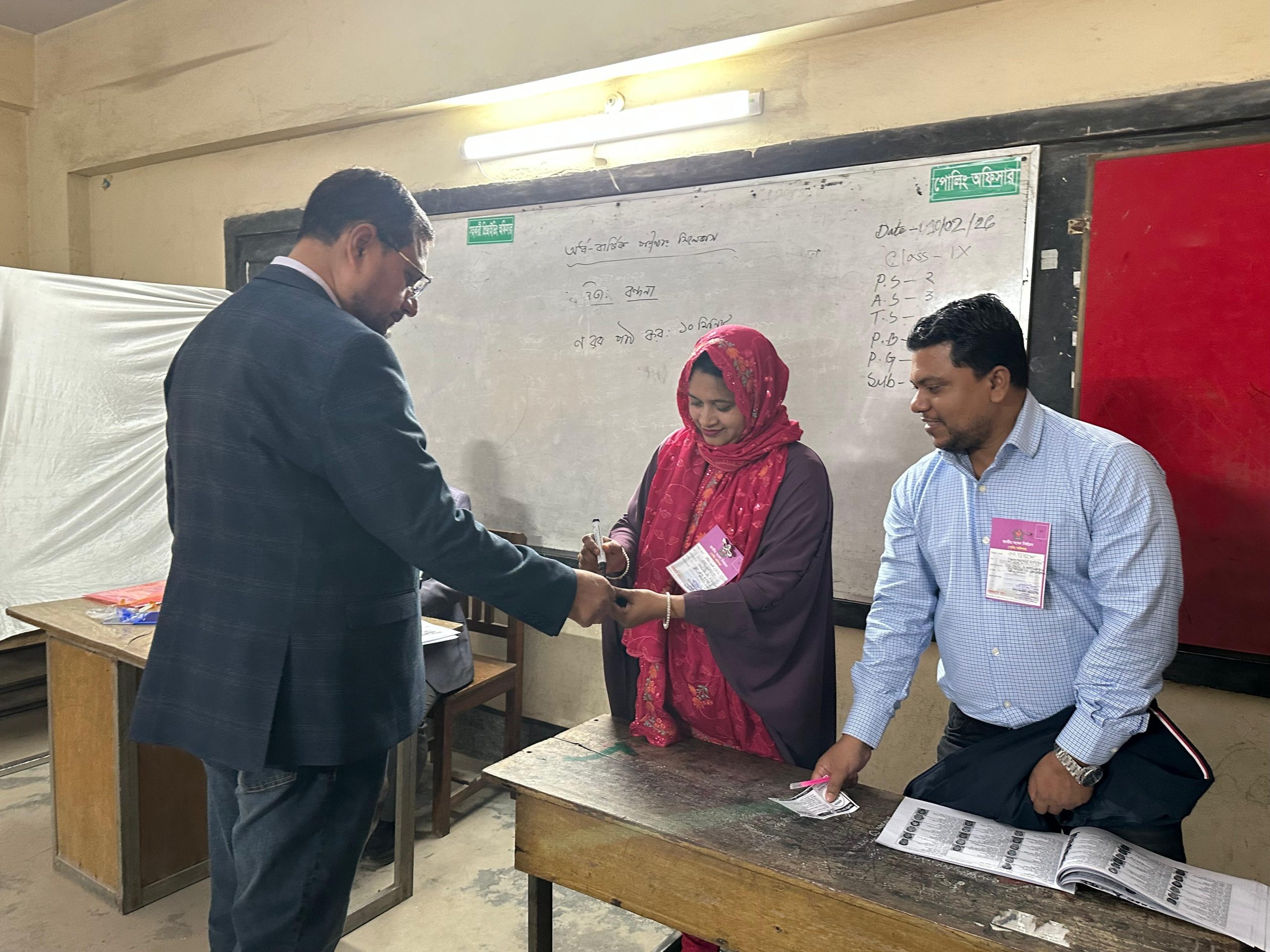 সকাল ০৮টা ২০ মিনিটে পরিবারের সদস্যদের সঙ্গে নিয়ে কেন্দ্রে উপস্থিত হন তিনি। এসময় তাকে অত্যন্ত আত্মবিশ্বাসী ও প্রফুল্ল মেজাজে দেখা যায়। নির্বাচনী দায়িত্ব পালনকারী কর্মকর্তাদের সহায়তায় তিনি ব্যালট পেপারে সিল দিয়ে ভোট প্রদান সম্পন্ন করেন।