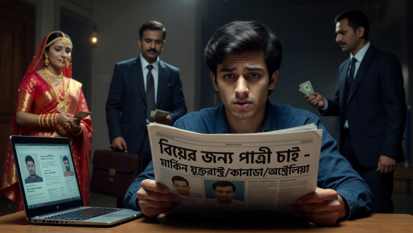 বিয়ে একটি পবিত্র বন্ধন, কিন্তু এই বন্ধন গড়ার নাম করে এখন চলছে কোটি টাকার বাণিজ্য। বড় বড় পত্রিকায় ‘পাত্রী চাই’ বা ‘পাত্র চাই’ বিজ্ঞাপনের আড়ালে ওত পেতে আছে ভয়ংকর প্রতারক চক্র। আমেরিকা, কানাডা বা অস্ট্রেলিয়া প্রবাসী সুন্দরী পাত্রীর প্রলোভন দেখিয়ে বেকার যুবকদের কাছ থেকে লাখ লাখ টাকা হাতিয়ে নেওয়া কিংবা ভুয়া পাত্র সাজিয়ে সম্ভ্রান্ত পরিবারের মেয়েদের জীবন নষ্ট করে দেওয়া এখন ম্যারেজ মিডিয়াগুলোর প্রধান ব্যবসায় পরিণত হয়েছে। এই ‘বিবাহ-ফাঁদে’ পড়ে কেবল টাকা নয়, অনেক পরিবার সামাজিক সম্মানও হারাচ্ছে।