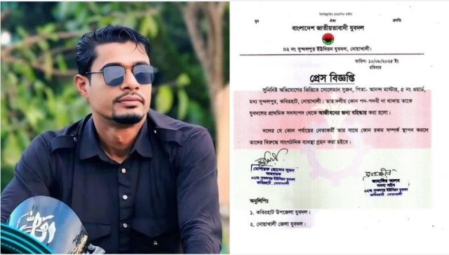 কবিরহাট উপজেলার সুন্দলপুর ইউনিয়ন যুবদলের আহ্বায়ক মোশারফ হোসেন সুমন ও সদস্য সচিব জাহাঙ্গীর আলম স্বাক্ষরিত প্রেস বিজ্ঞপ্তিতে বহিষ্কারের বিষয়টি নিশ্চিত করা হয়েছে।