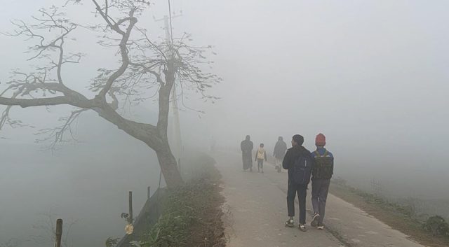 রংপুর : উত্তরের সীমান্তবর্তী জেলা রংপুরে ঘন কুয়াশা ও ঠাণ্ডায় জেঁকে বসেছে শীত। গত দু’দিন ধরে সূর্যের দেখা মিলছে না। ফলে, খেটে-খাওয়া ও ছিন্নমূল মানুষ পড়েছে চরম বিপাকে। হাসপাতালগুলোতে বাড়ছে শীতজনিত রোগীর ভিড়। শীতবস্ত্রের অভাবে কষ্টে পড়েছে তিস্তা পাড়ের হতদরিদ্র, ছিন্নমূল ও স্বল্প আয়ের শ্রমজীবী মানুষ। জরুরি প্রয়োজন ছাড়া লোকজন বাইরে বের হচ্ছেন না। শীতের দাপটে গ্রামাঞ্চলের অনেকেই আগুন জ্বালিয়ে শীত নিবারণের চেষ্টা করছে।