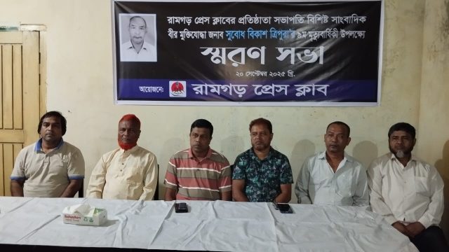 মোঃমাসুদ রানা, রামগড়: রামগড় প্রেসক্লাবের প্রতিষ্ঠাতা সভাপতি ও পার্বত্য চট্টগ্রামের অন্যতম প্রবীন সাংবাদিক বীর মুক্তিযোদ্ধা সুবোধ বিকাশ ত্রিপুরা-র ৯ম মৃত্যুবার্ষিকী উপলক্ষে শনিবার (২০ সেপ্টেম্বর) বিকেলে রামগড় প্রেসক্লাবের সম্মেলন কক্ষে এক স্মরণসভা অনুষ্ঠিত হয়।